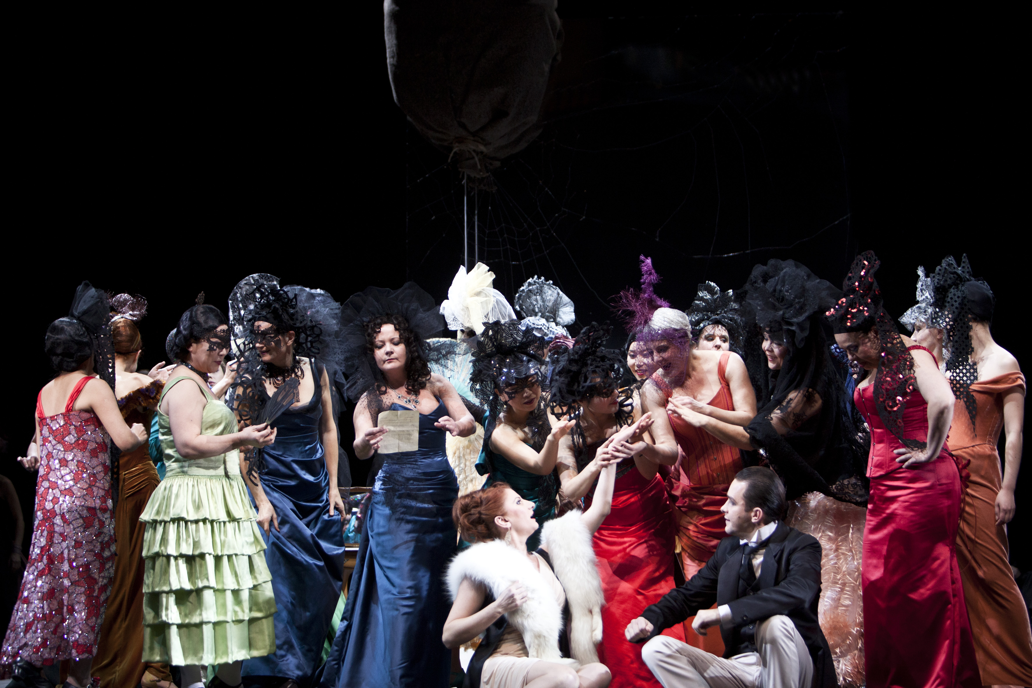 I really like the fact that there is a lot of abstraction. Alfredo and Violetta are on this round platform on the middle of the stage the entire time. It feels like there is some kind of bubble of intimacy between them. This works very well for the characters and I think that this creates a remarkable image of them being enclosed in a room where they can evolve as a couple and develop their love.