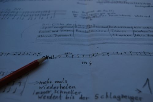 Alexander Grams (Teilnehmer der Kompositionswerkstatt für Kinder), Jobst Liebrecht (Komponist) und Felix Wilde (Trompeter der Staatskapelle Berlin) haben ihre Gedanken zur Kompositionswerkstatt aufgeschrieben.