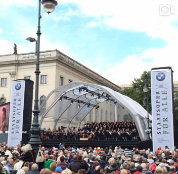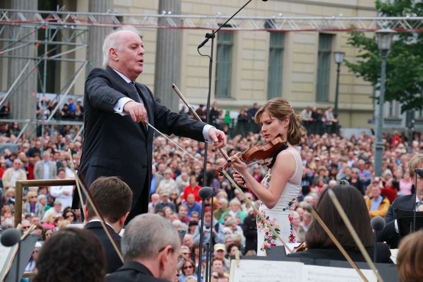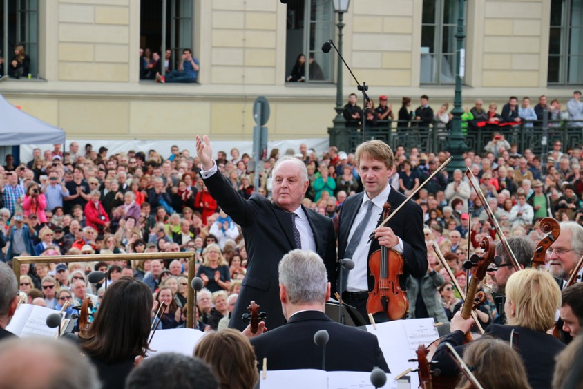 Was für ein fantastisches Konzert! Gestern erlebten über 40.000 Besucher auf dem Berliner Bebelplatz »Staatsoper für alle« 2015 mit Daniel Barenboim, der Solistin Lisa Batiashvili, der Staatskapelle Berlin und dem Staatsopernchor. Und sogar das sonnige Wetter ist uns treu geblieben. Aber nicht nur in Berlin war das Konzert ein Highlight: Weitere 40.000 Zuschauer waren per Live-Stream aus der ganzen Welt – u. a. aus Japan, USA, Russland, Dänemark, Spanien und Deutschland – dabei!