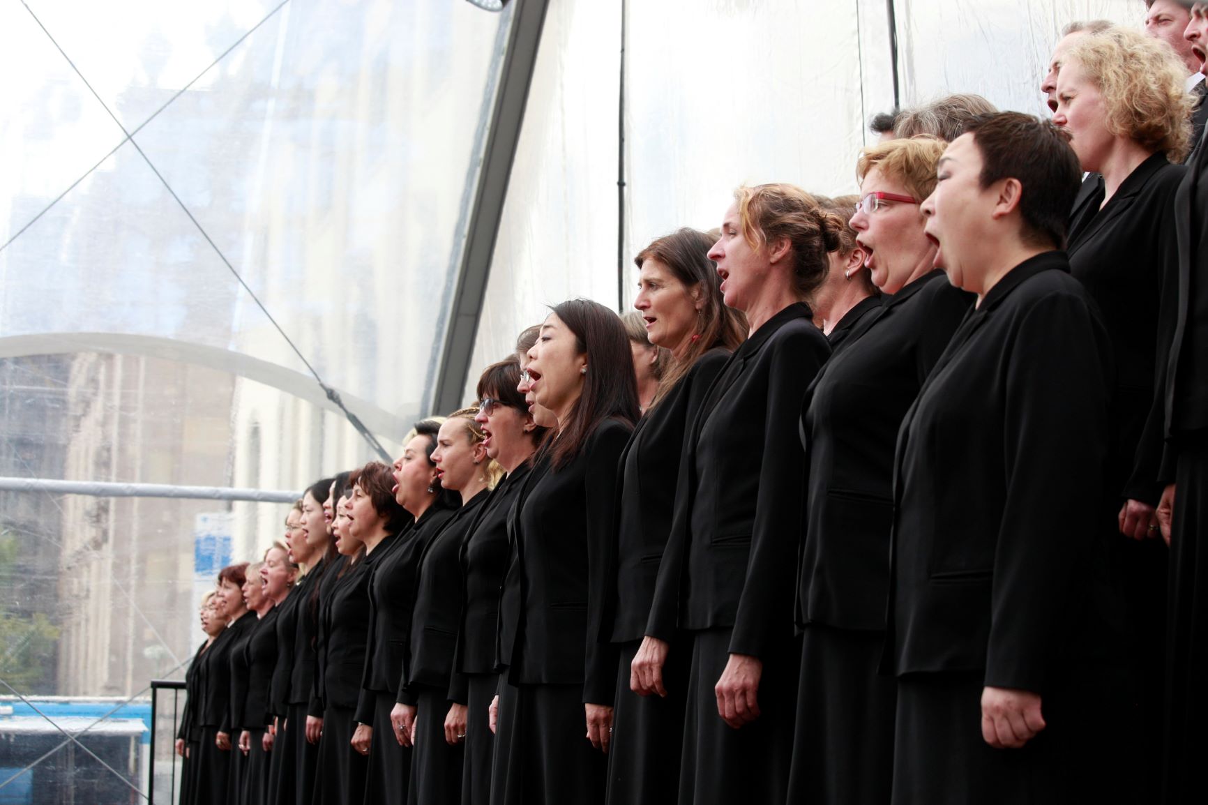 Einmal im Jahr heißt es »Staatsoper für alle«, live auf dem Bebelplatz. Höhepunkt dabei ist das Open-air-Konzert der Staatskapelle Berlin mit Daniel Barenboim, vor gewöhnlich Zehntausenden von Besucher:innen. 2015, an einem sommerlichen 21. Juni, hatte auch der Staatsopernchor seinen Auftritt vor großem Publikum. Mit dem »Einzug der Gäste« aus Wagners »Tannhäuser« sorgten die Sänger:innen für einen festlichen Auftakt, dem noch Tschaikowskys Violinkonzert mit der Solistin Lisa Batiashvili sowie Beethovens 5. Sinfonie folgten. Aufgrund der Baustelle – die Staatsoper befand sich noch mitten in der Sanierungsphase, auch wenn sich schon viel am historischen Gebäude getan hatte – war die Bühne vor die Humboldt-Universität verlegt worden. Kräftig schallte es über den Bebelplatz, als die Trompeten und mit ihnen das gesamte Orchester die besagten »Gäste« ankündigten. Und der Chor setzte ein, erst die Herren, dann die Damen, dann alle gemeinsam, mit einem strahlenden hohen H der Soprane am Schluss.