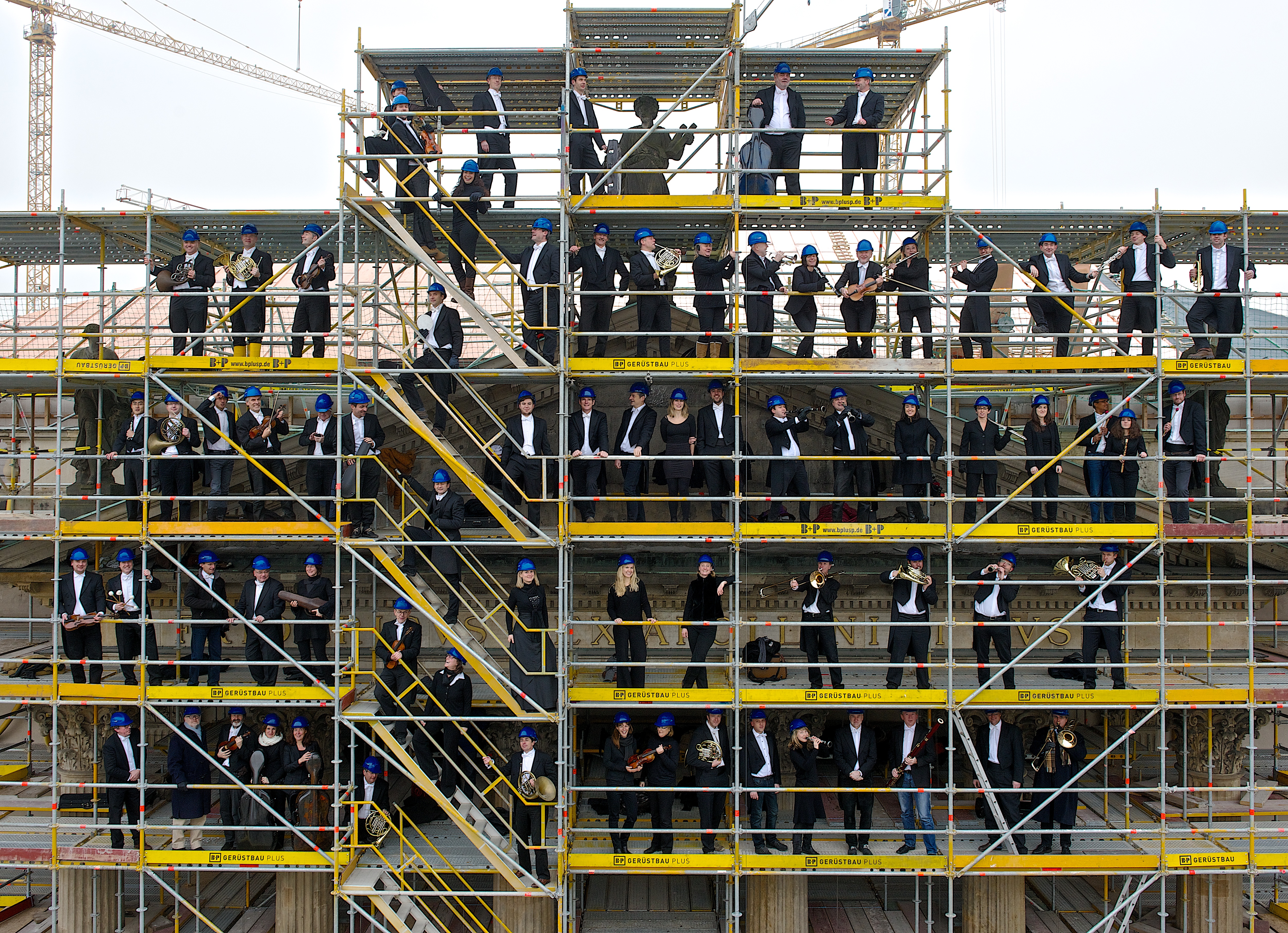 … die Staatskapelle Berlin vor dem Portikus Unter den Linden in luftiger Höhe.