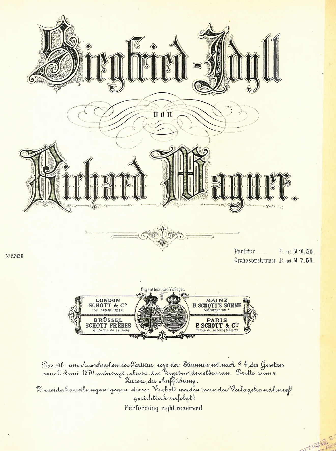 In der Tat hatte Wagner das Titelblatt der Widmungspartitur mit den Worten versehen: »Tribschener Idyll mit Fidi-Vogelgesang und Orange-Sonnenaufgang als Symphonischer Geburtstagsgruß. Seiner Cosima dargebracht von Ihrem Richard« – eine sehr persönliche Zueignung eines sehr persönlichen Werkes, die manche Assoziationen enthält und auf manches Faktische verweist. So wird durch die Erwähnung von »Fidi« – dem Kosenamen für Richard und Cosimas im Juni 1869 geborenen Sohn Siegfried – das Augenmerk einerseits auf das Kind, zum anderen aber auch auf den dritten Teil der »Ring«-Tetralogie gleichen Namens gerichtet.